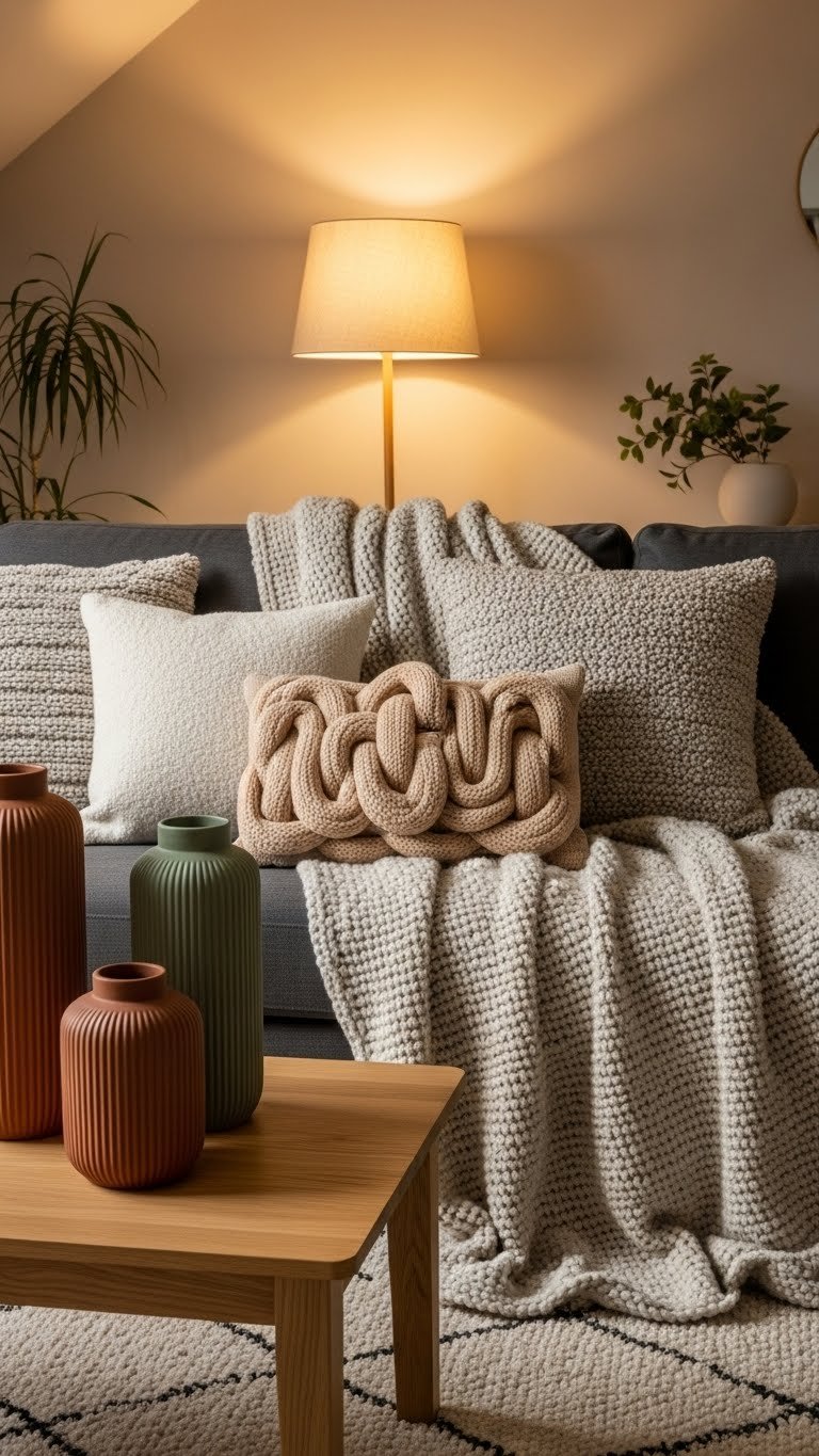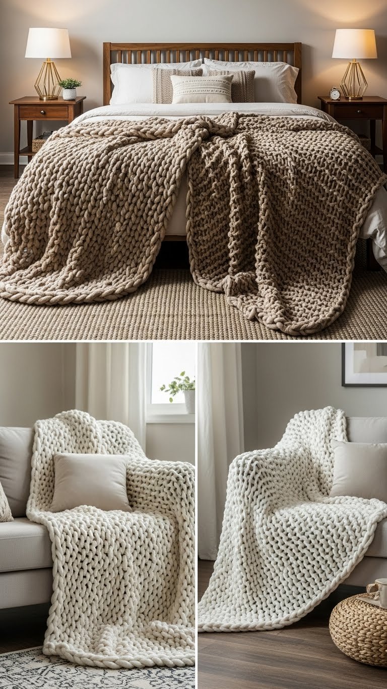 When the temperature dips, layer heavy throws and chunky knit blankets at the foot of your bed and across seating areas to add instant warmth and texture; you’ll love how their weight and tactile loops make a room feel both curated and cuddly.