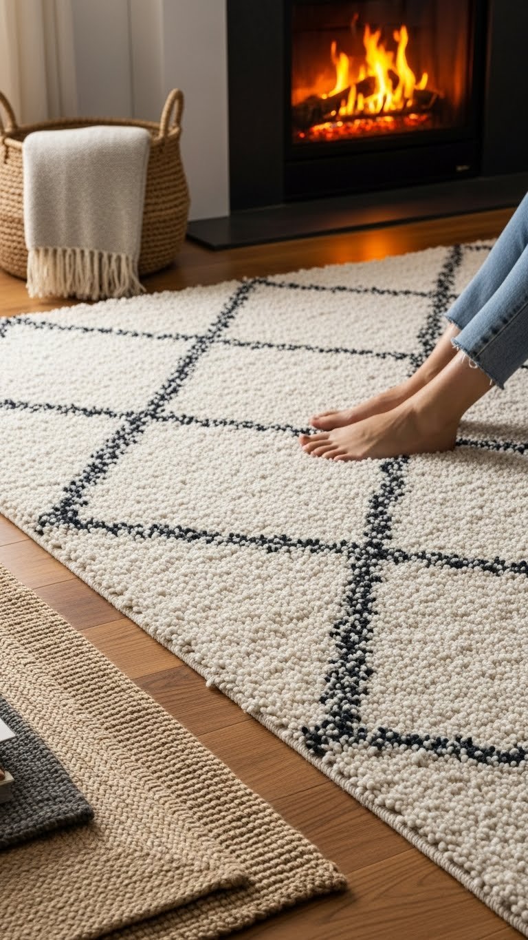 Kick off winter comfort by laying down a plush area rug that immediately softens cold floors and muffles sound. You’ll choose pieces that feel indulgent underfoot, mixing tactile shag or loop pile with trend-aware palettes.