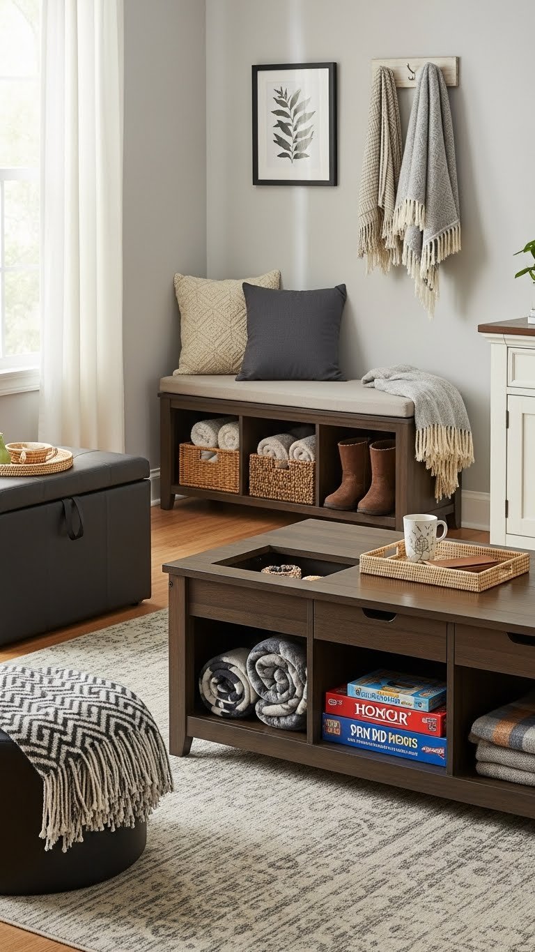 A few well-chosen pieces can transform a chilly room into a snug, efficient haven: think storage ottomans that double as extra seating, benches with cubbies for throws and boots, or coffee tables with hidden compartments for blankets and board games. Choose clean-lined pieces with convertible seating and clever hidden storage so you’ll reclaim floor space, simplify routines, and enjoy a liberated, cozy home.