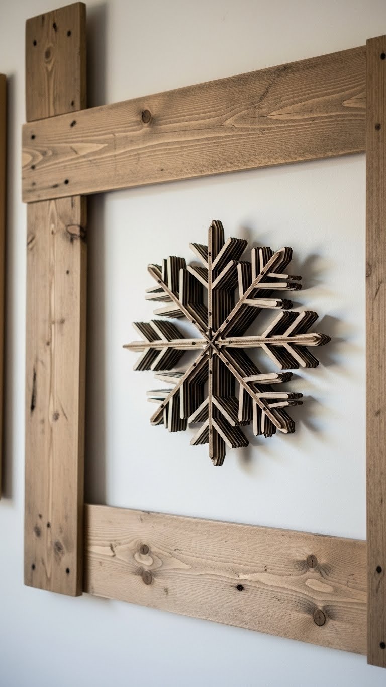 Crafted from thin, laser-cut panels, layered wood snowflake wall art gives your space a crisp, tactile focal point that feels both modern and handmade. You’ll hang reclaimed lumberflake pieces or choose neutral stains, letting negative space breathe.