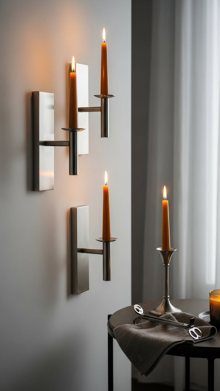 Metallic Silver Candle Sconces With Warm Tap Ers