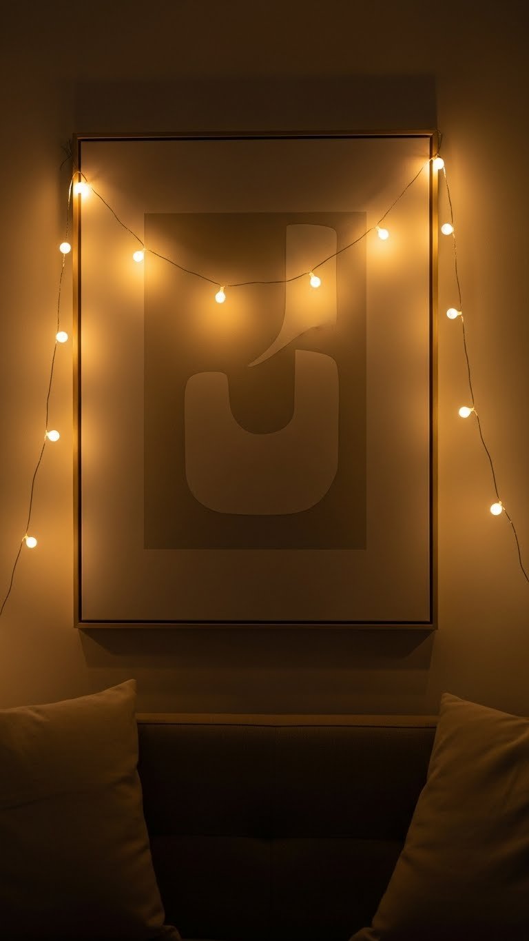 Twinkle Light Garland Draped Over Neutral Art